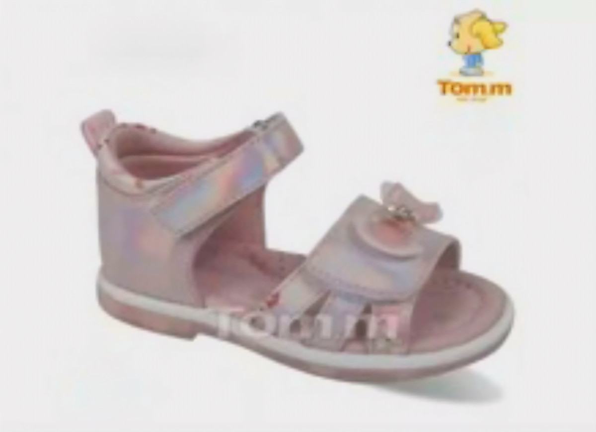 Босоніжки для дівчинки. Мають блискуче покриття, устілка шкіра, супінатор. Повнота регулюється липучками. Мають декор у вигляді бантика.