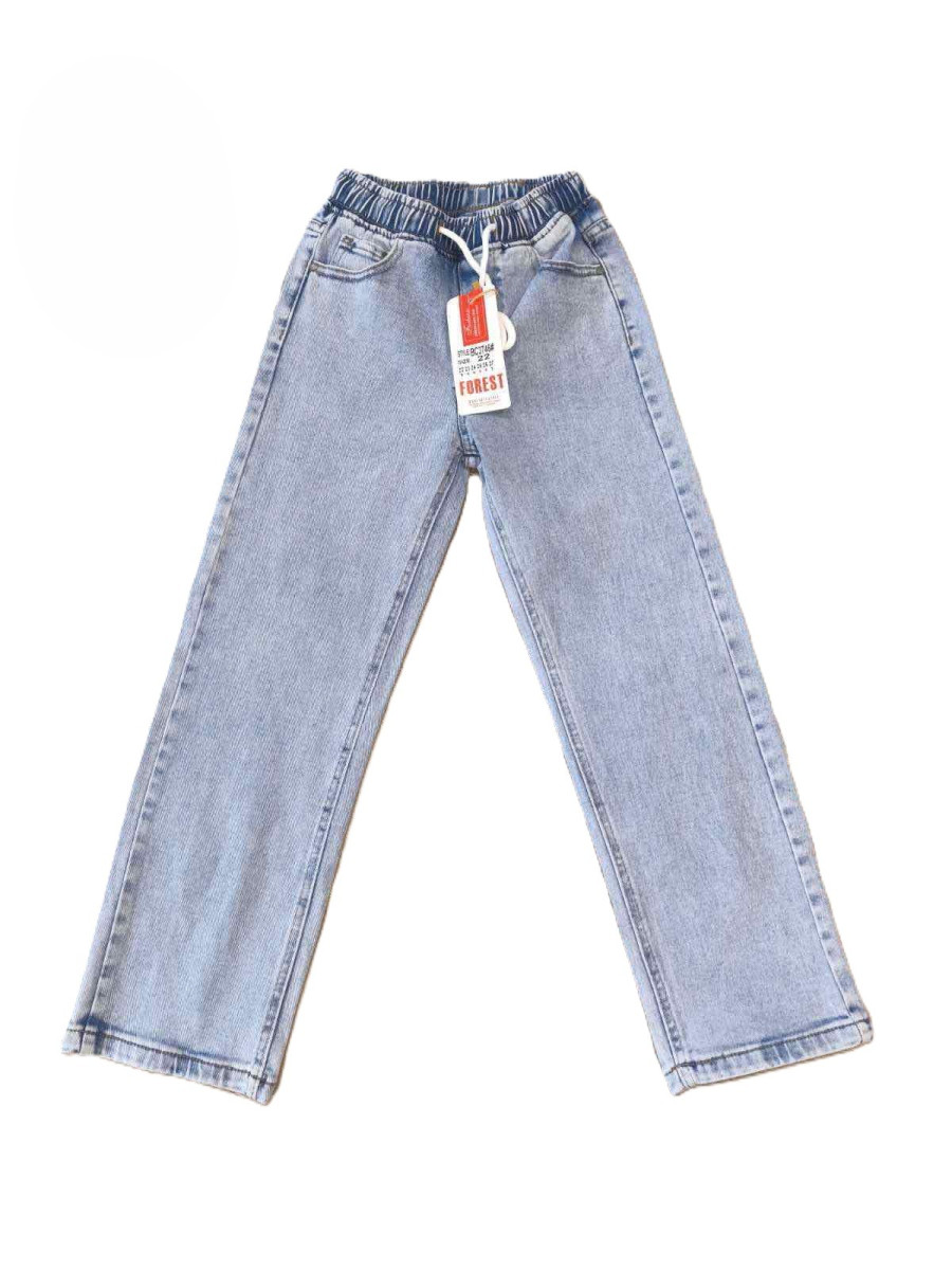 Джинси труби фірми FOREST. Виконані з якісного котону. В поясі резинка і робоча шнурівка. При виборі розміру орієнтуйтесь на довжину по зовнішньому шву.