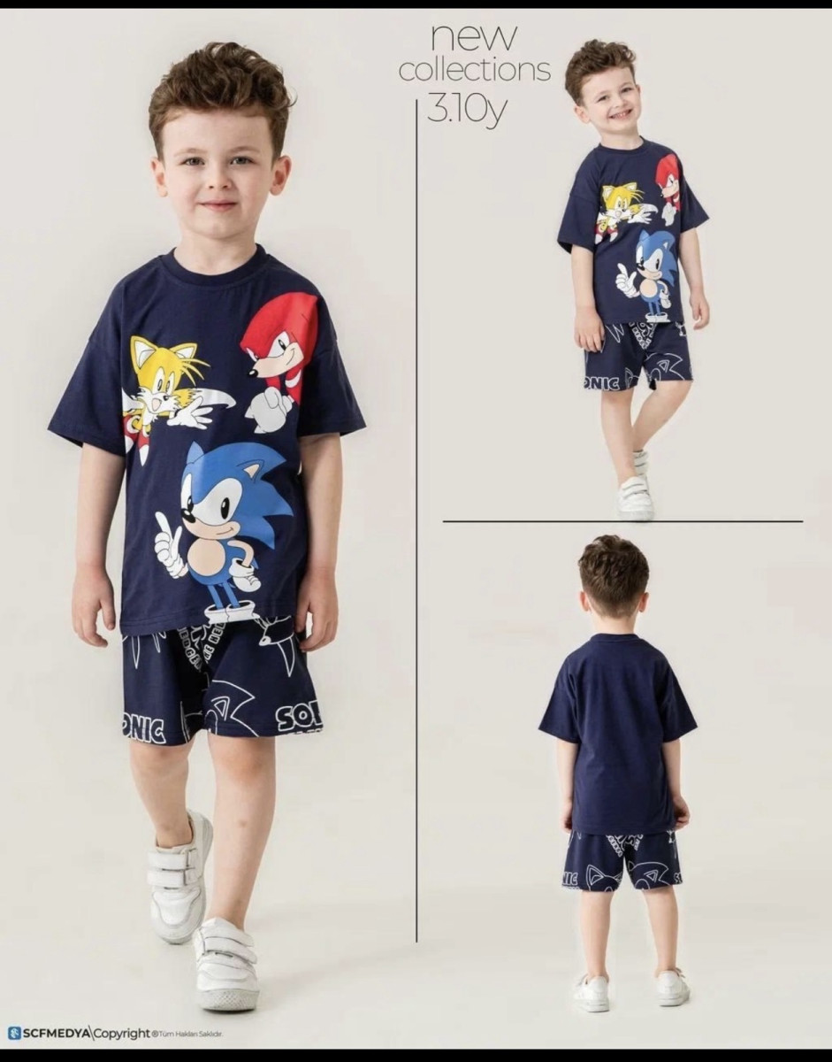Футболка для хлопчика з малюнком Sonik. Виробництво Туреччина. Розмір повномірний і відповідає віку дитини. Подовжений крій футболки. 100 % бавовна. Колір темно - синій