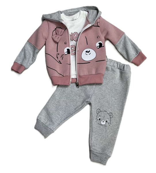 Костюм на дівчинку 3ка, на флісі: штани+лонгслів+ кофта на блискавці. 70% бавовна ,30% полієстр. Виробник Туреччина. Розмір відповідає зросту.