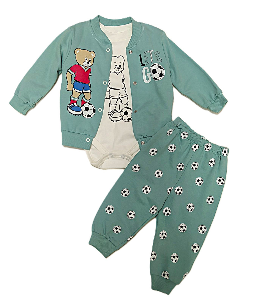 Костюм трійка для хлопчика: бомбер на кнопках+боді з довгим рукавом+штани.