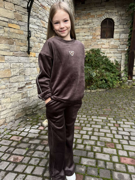 Костюм 2ка велюр рубчик на хутрі шоколад Арт.85007