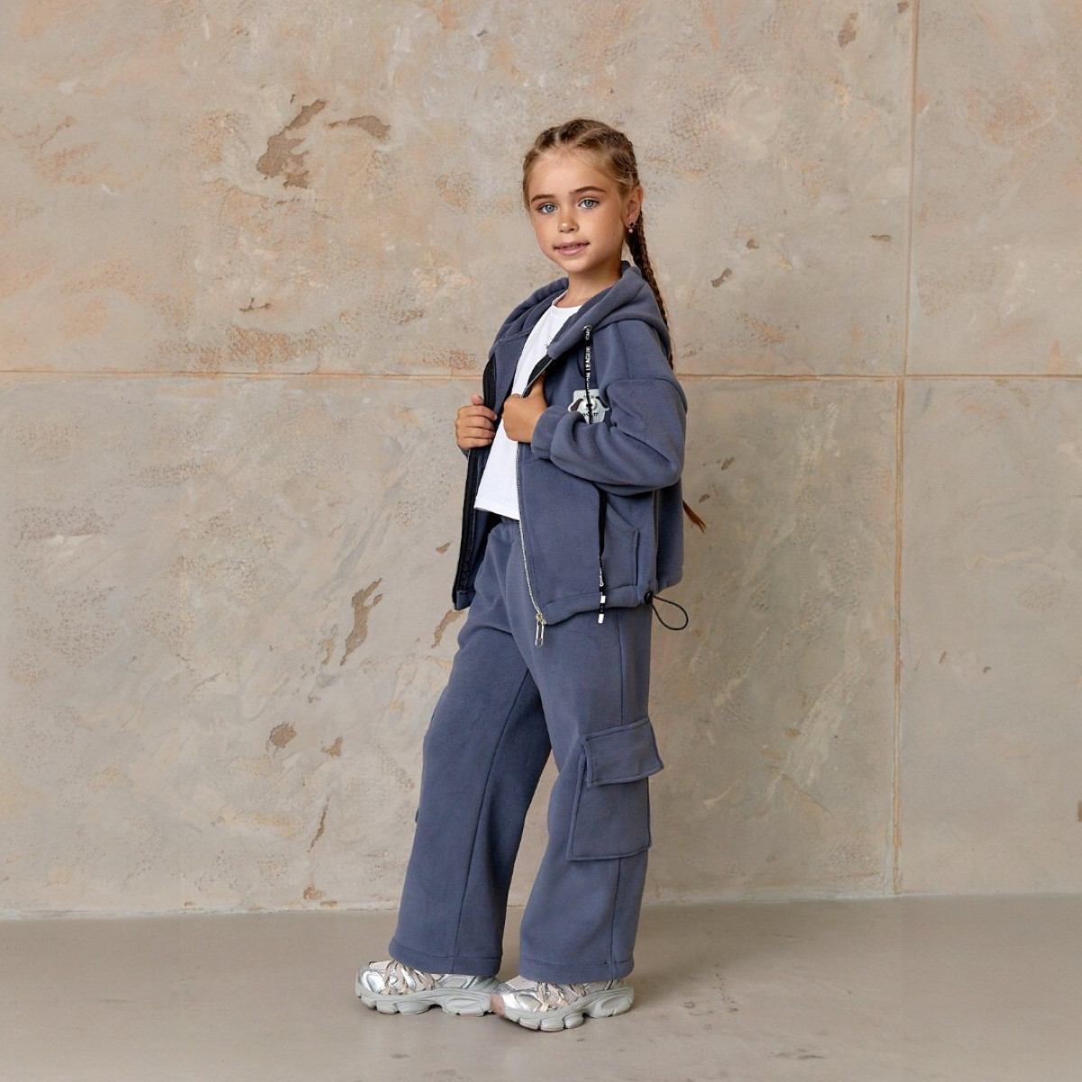 Костюм дабл фліс, штани з карманами і затяжками внизу.