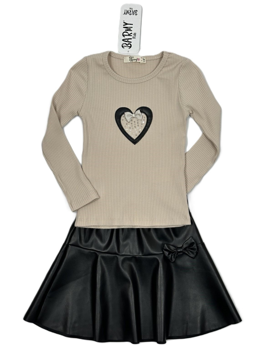 Костюм для дівчат: лонг + спідниця з еко шкіри