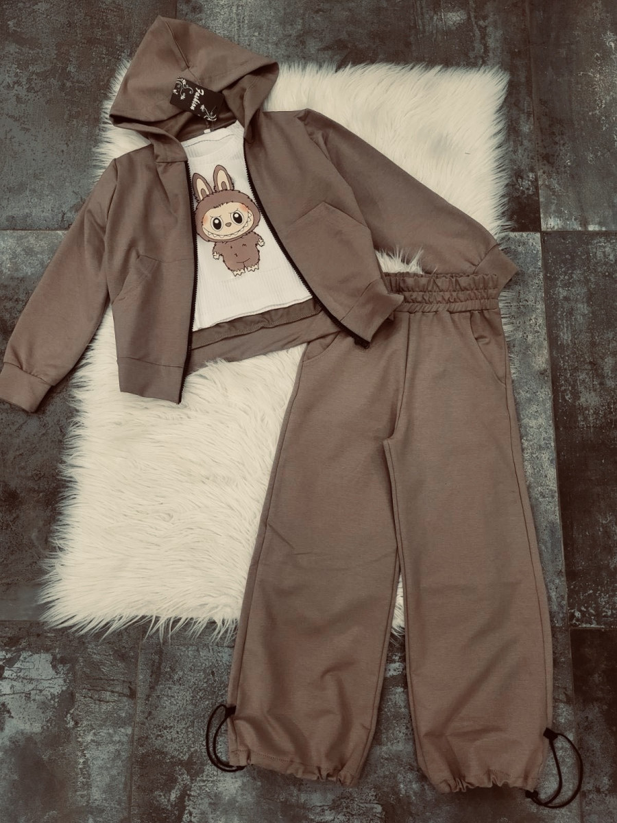 Костюм трійка для дівчинки - кофта на близкавці + футболка + штани. Тканина двонитка. Розміри повномірні та відповідають зросту дитини.
