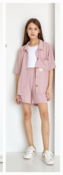 Костюм для дівчат 3-ка. Сорочка+ Топ+Шорти. Пудровий