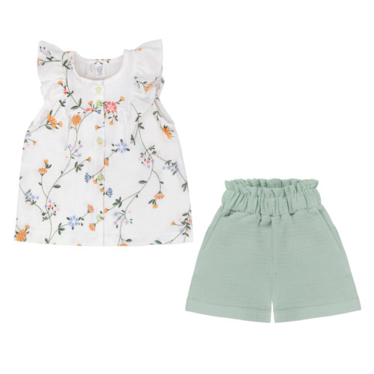 Легкий, дихаючий костюм для дівчинки з мусліну. Розміри повномірні та відповідають зросту.