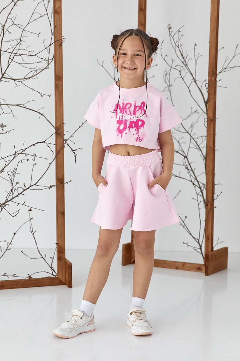 Костюм 2-ка. Футболка-кроп та юбка-шорти. Розмір відповідає зросту.