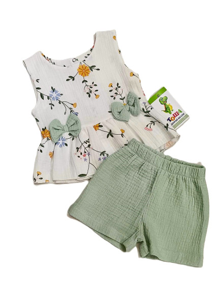 Мусліновий котюм на дівчинку. 100% бавовна. Виробник Україна. Костюм 74-80 це на зріст 74, 80-86 на зріст 80.