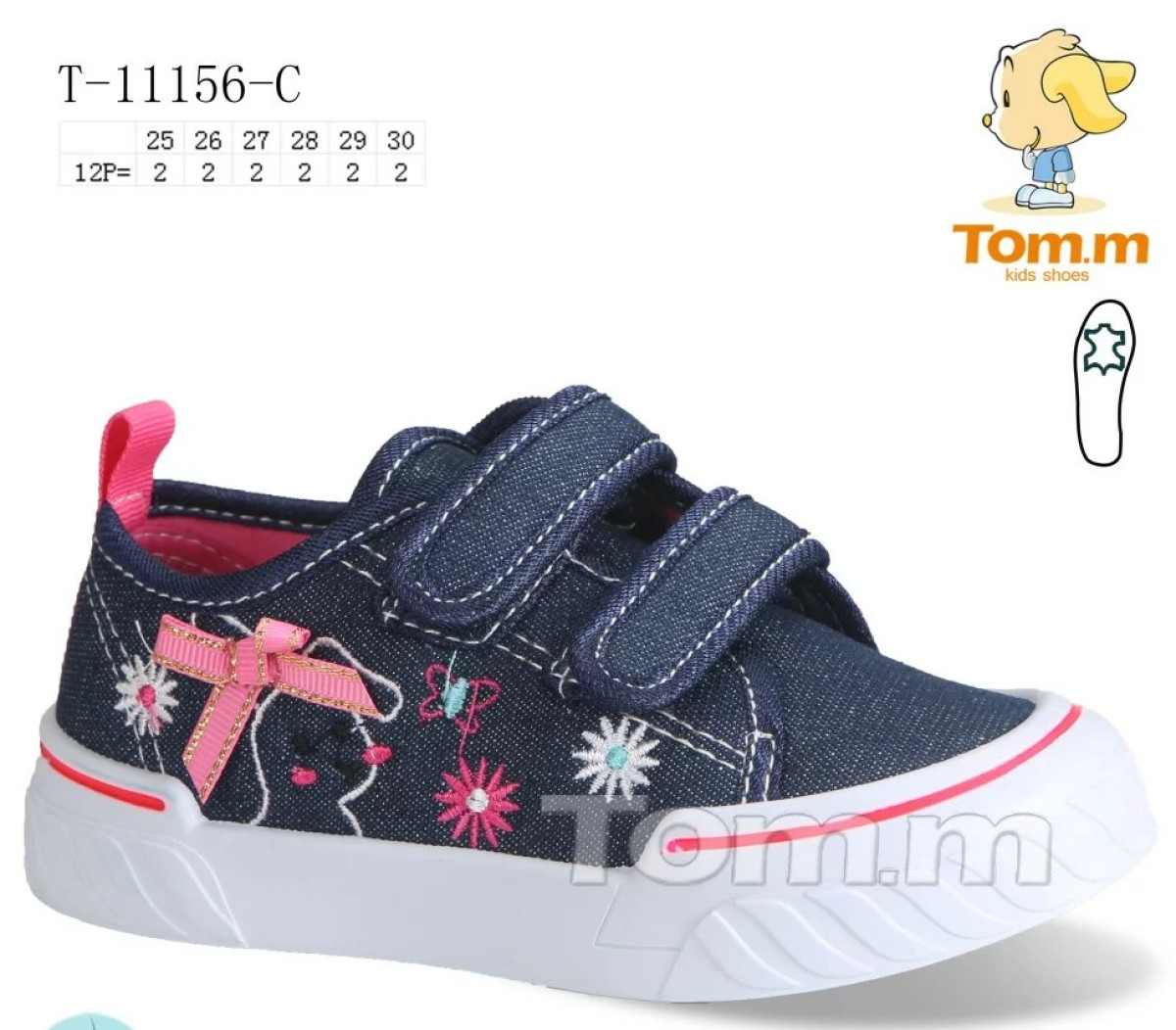 Текстильні котонові кеди для дівчат від фірми Том.м. Розміри повномірні. Устілка з супінатором. Похибка в замірах можлива +- 2 мм