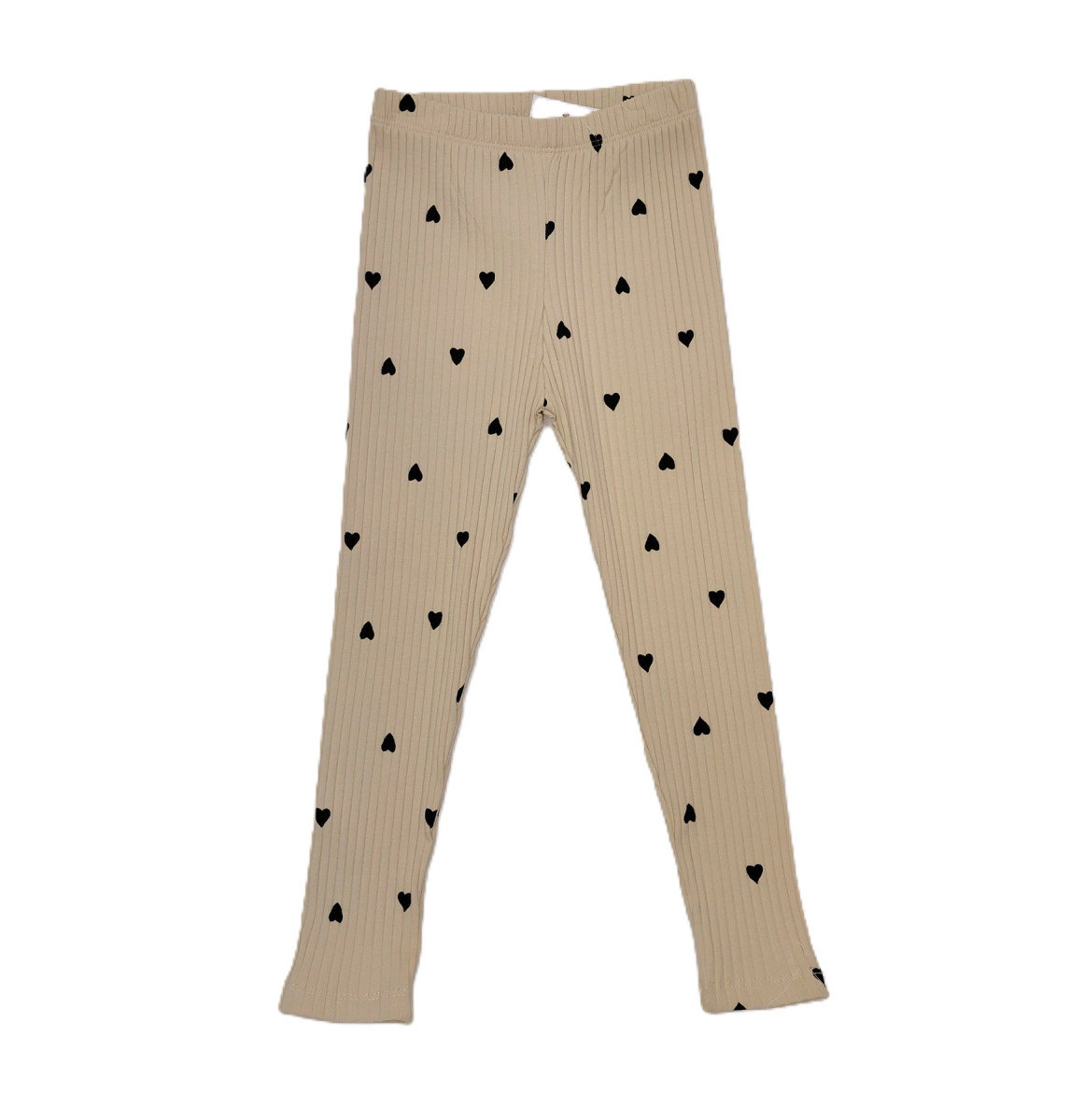 Лосини для дівчинки бежевого кольору в рубчик і чорні серденька.