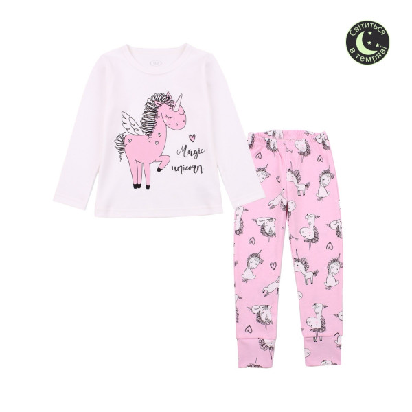 Піжама для дівчинки українського бренду Фламінго. 100% бавовна. Світиться у темряві. Розміри відповідають зросту дитини.