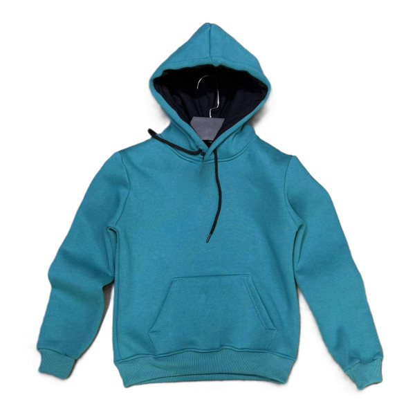 Худі 3нитка фліс унісекс. Яскраво-бірюзового кольору. Подвійний капюшон, зпереду кишеня.