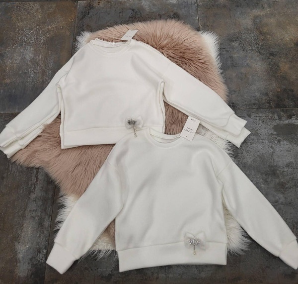 Кофтинка Ангора в білому кольорі. Знизу милий бантик з брошкою, яка відстібається.