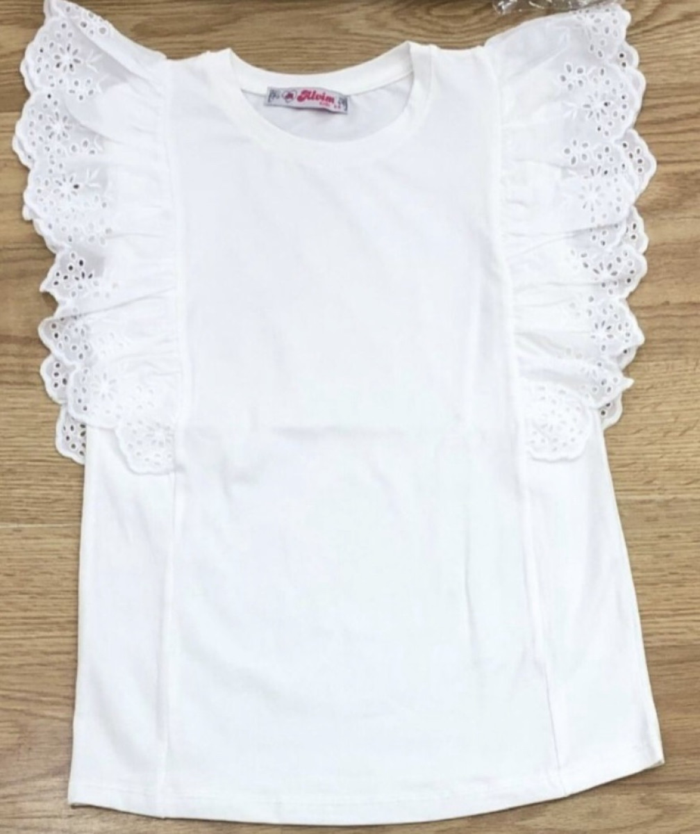 Футболка для дівчинки з прошвою. Виробництво Туреччина. 95% бавовна 5% еластан. Розміри повномірні та відповідають віку дитини.