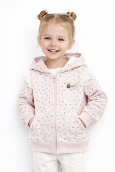 Кофта для дівчинки на блискавці з капюшоном. Прикрашена серденьком, має дві кишеньки.