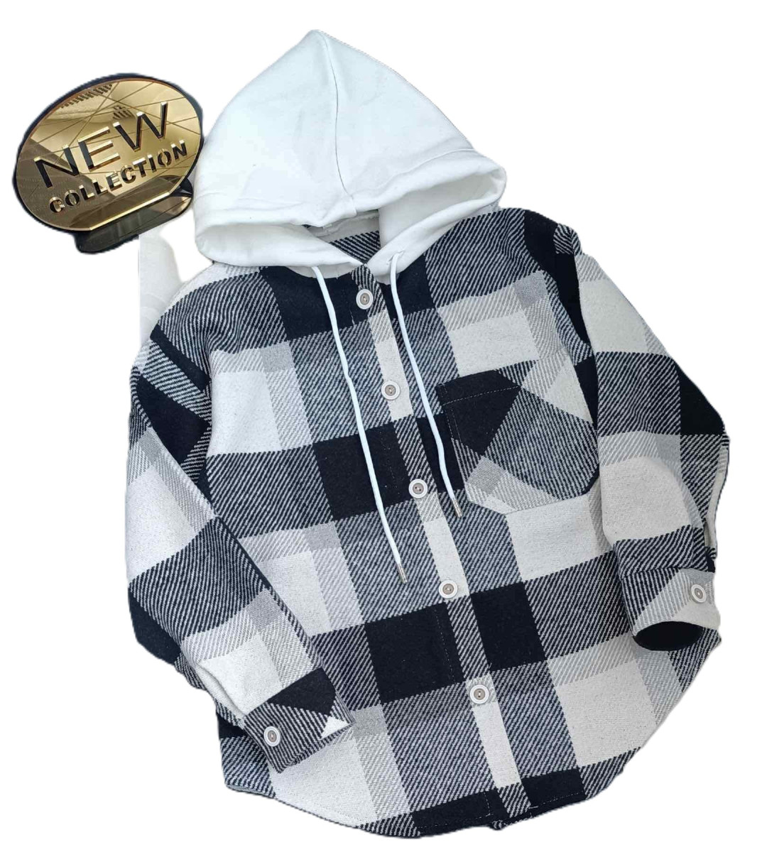Сорочка клітинка чорно-біла з капюшоном.