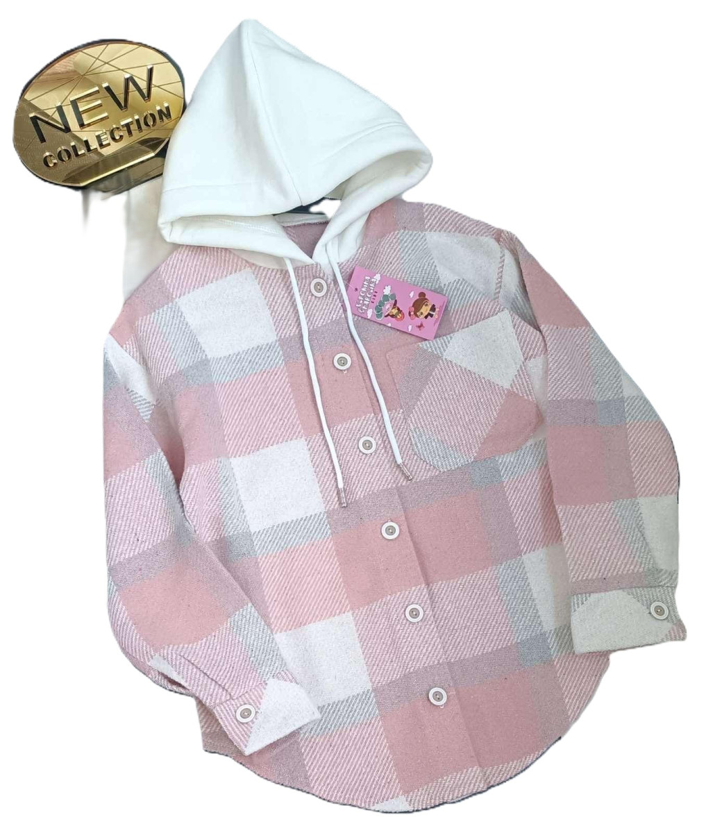 Сорочка клітинка пудра з капюшоном Арт.28942