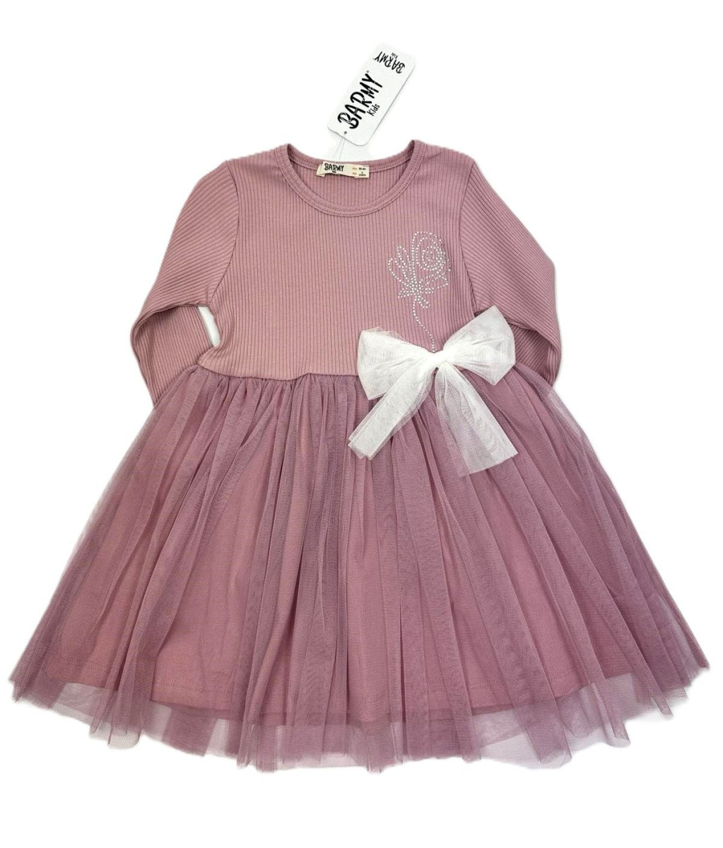 Сукня відомого бренду BREEZE. Верх рубчик, прикрашений стразами та бантиком, низ - фатин, на бавовняній підкладці . Виробництво Туреччина. 95% бавовна 5% еластан. Розміри повномірні.