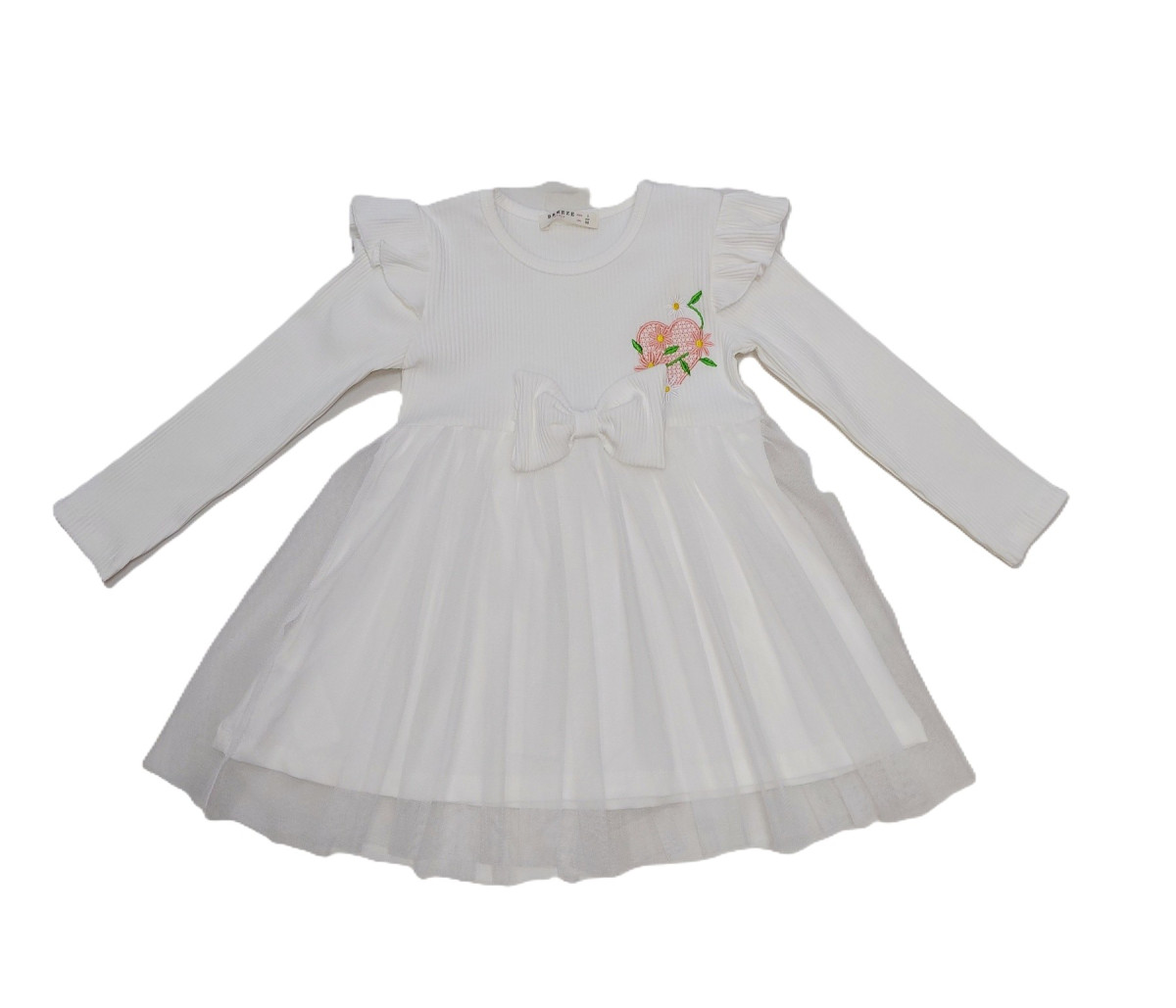 Сукня біла з фатіновою спідницею на бавовняній підкладці відомої фірми Breeze. Верх виконаний з рубчику. Прикрашена бантиком та вишитим серденьком.
