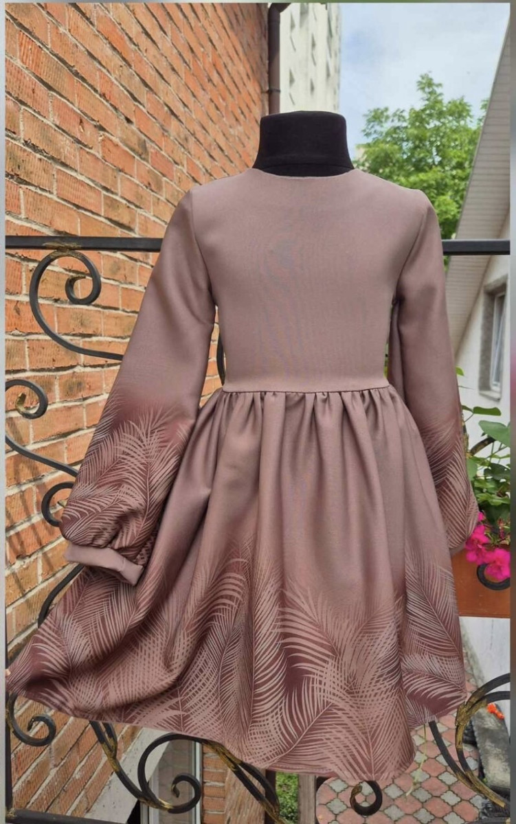 Сукня з принтом кольору мокко. Дуже ніжна, легка та повітряна. Зав'язується на пояс.