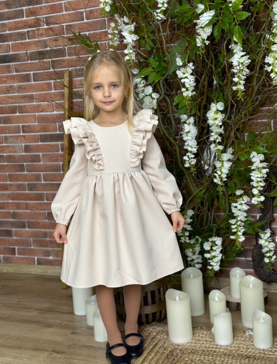 Святкова сукня. З плотної костюмної тканини. По спинці застібається на гудзики та має пояс.