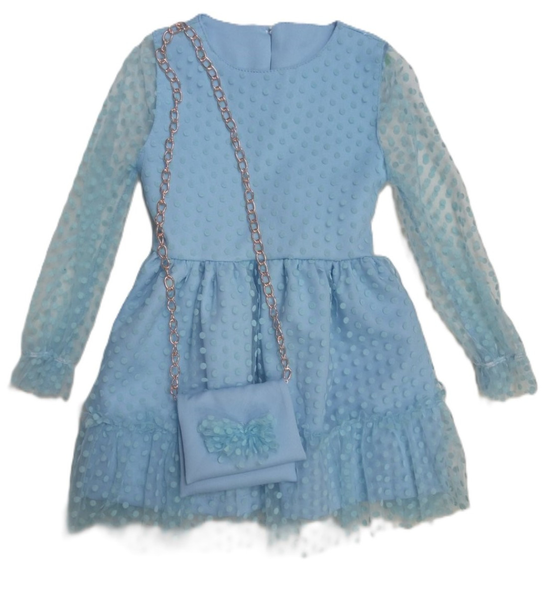 Нарядна сукня на бавовняній підкладці, в комплекті з сумочкою на ланцюжку. Розмір маломірить на розмір.